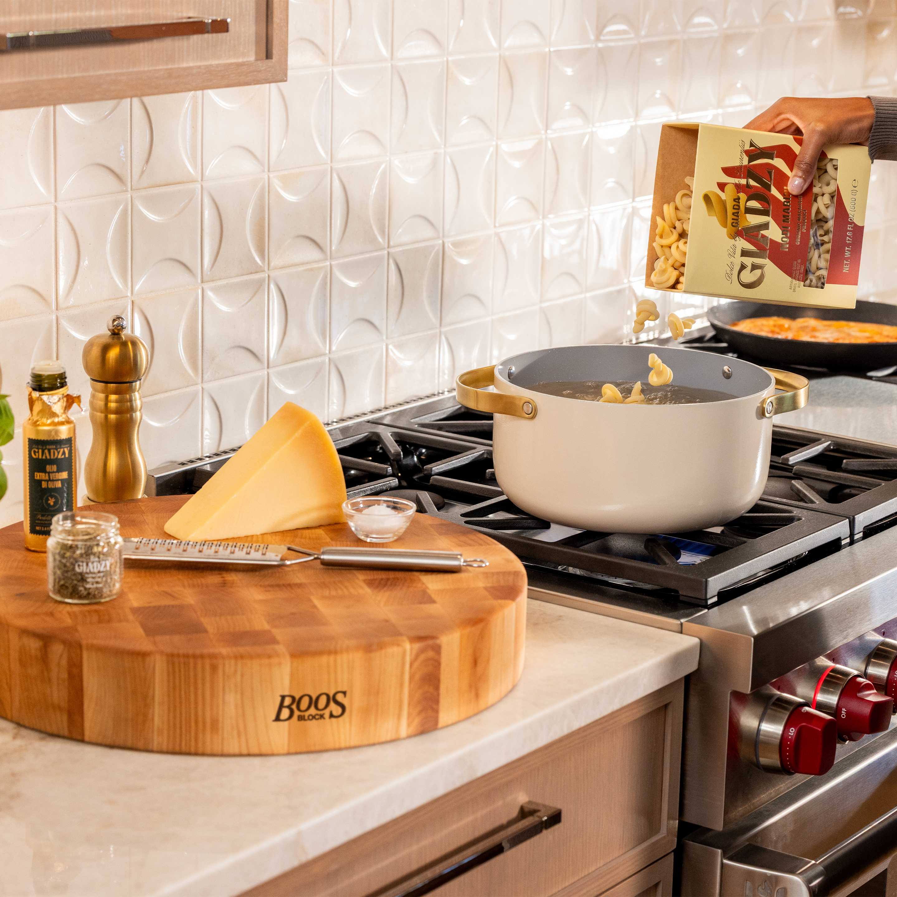 According to Homes & Gardens, Ina Garten relies on John Boos cutting boards to create a sleek, raised prep surface, keeping her countertops organized and easy to maintain. Both practical and timeless, it is a solution that blends professional level function with everyday beauty.