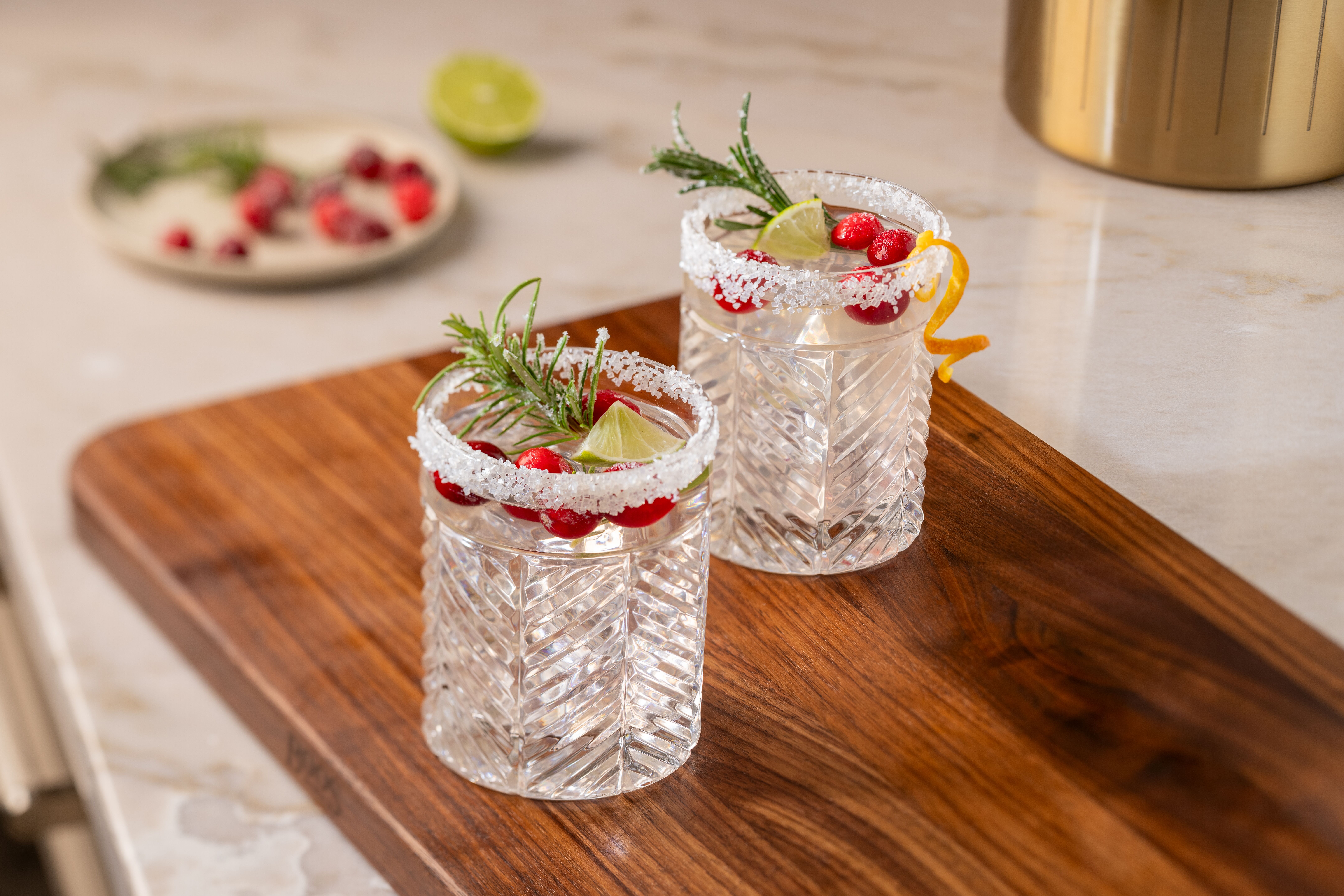 Optional garnish: Sugared rim, fresh cranberries, lime wedge, or rosemary sprig